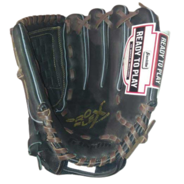 Franklin Cowhide lederen handschoen voor de rechtshandige werper. Deze Pro Flex Serie Glove heeft een lederen cowhide palm en een PU versterkte achterkant met een verstelbare pols strap.