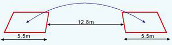 De velden dienen 12,80m uit elkaar te liggen.