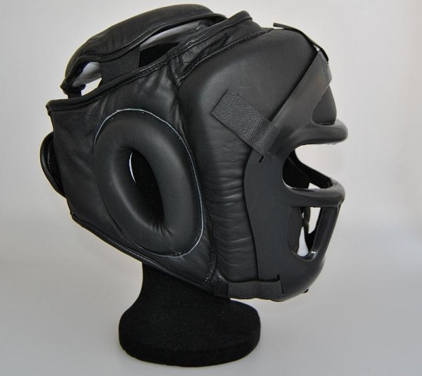 Deze hoogwaardige hoofdbeschermer is uitgevoerd in echt zwart leer en voorzien van een gemakkelijk verwijderbaar kunststof rooster en een beschermende pad bovenop het hoofd. Dit biedt optimale veiligheid zonder in te leveren op comfort of bewegingsvrijheid.