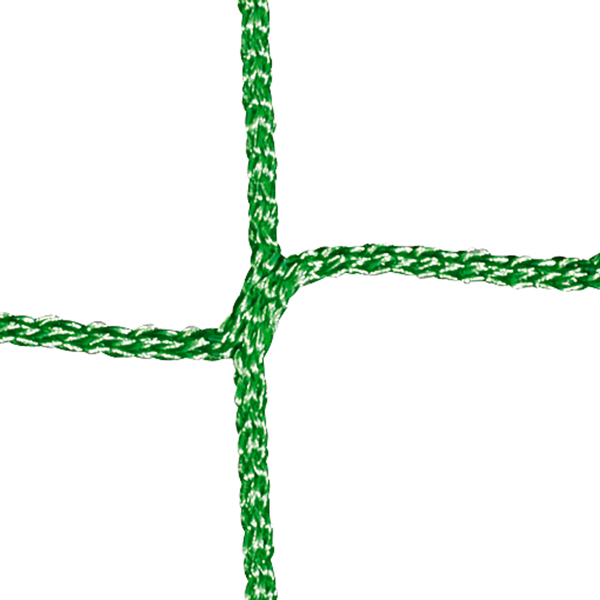 Junioren voetbaldoelnet, met een vierkante maas van 120 mm en een diepte boven van 0.90 en 2,00 meter, onder, biedt optimale duurzaamheid en veiligheid. Garendikte van 3 mm en gemaakt van hoogwaardig polypropyleen knooploos materiaal. Prijs per stel.