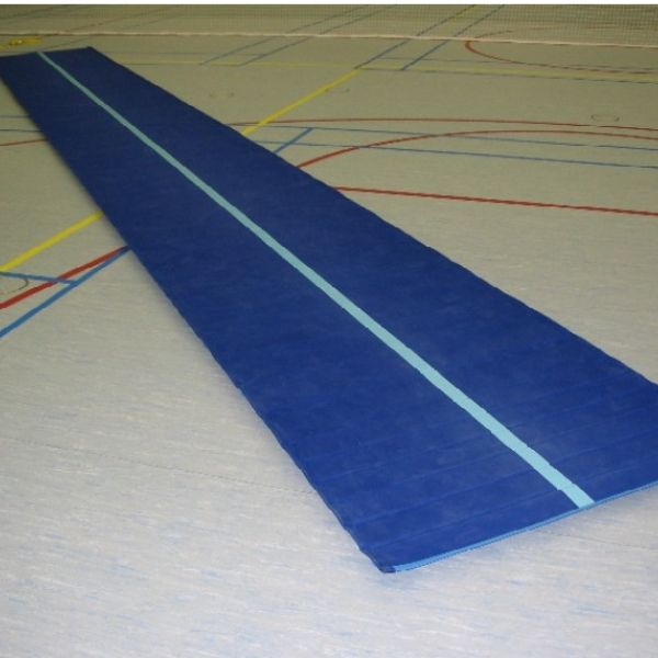 Lange turnmat gemaakt van blauw canvas doek en voorzien van een richtlijn. De vulling is gemaakt van lichtgewicht EV schuim. Afmeting 500 x 120 x 4 cm. Incl. vastzetband.