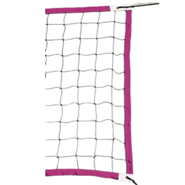 Beachvolleybal net in een recreatieuitvoering. Gemaakt van 2 mm polytheen in de kleur zwart. Rondom voorzien van een 7 cm fluorroze band.
