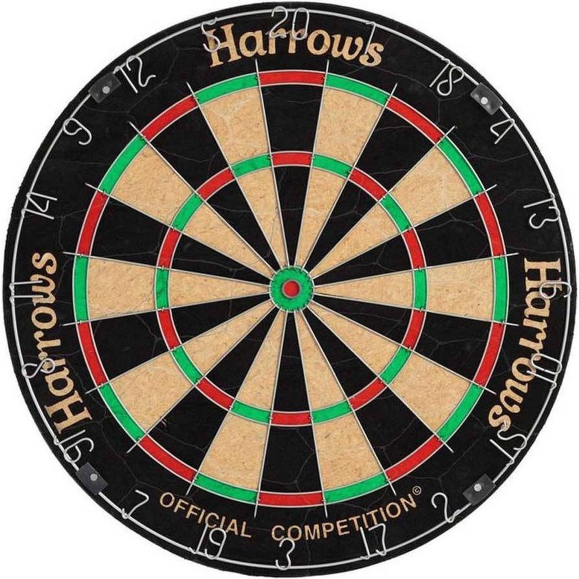 Het Harrows Official Competition dartbord is gemaakt volgens de officiële wedstrijdnormen. Het dartbord heeft een ronde draad. De bullseye van het Harrows dartbord is vrij van nietjes (kramvrij). Het Harrows Official Competition Dartbord wordt geleverd inclusief professioneel ophangsysteem.