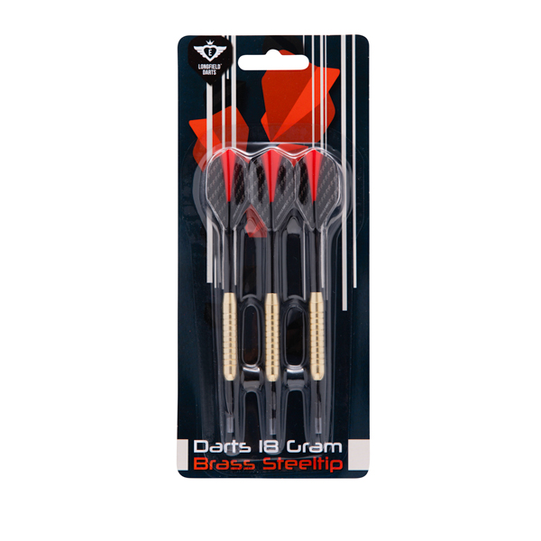 Set van drie dartpijlen met een gewicht van 18 gram. Brass kwaliteit. Compleet met shaft en flights.