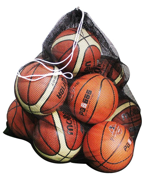 Grote draagzak voor ballen en andere sportmaterialen. Gemaakt van mesh, zodat de materialen niet stikken. Afmeting 110 x 90 cm.