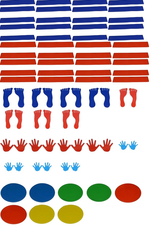 Grondmarkeringsset Compleet is een populaire organisatie- en oriënteringshulp en wordt gebruikt bij de toestellenopbouw en/of circuittraining.