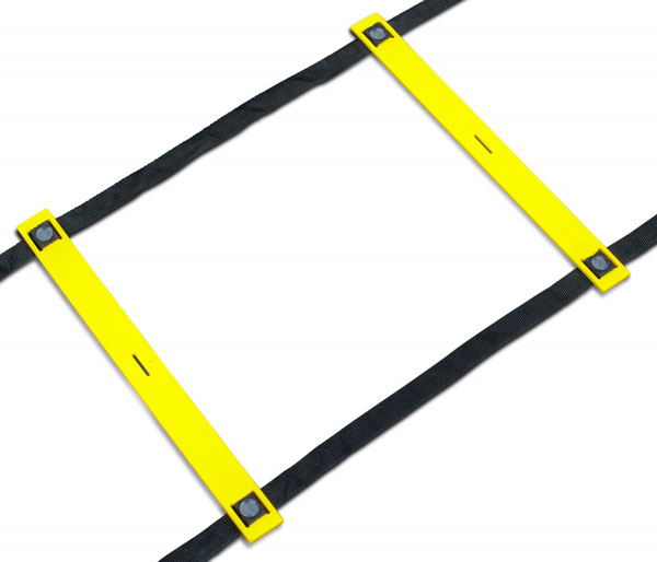 Coördinatieladder, trainingsmiddel voor het opbouwen van de conditie en het trainen van behendigheid. De loopladder heeft een lengte van 9 meter en heeft 21 platte kunststof sporten. Voor binnen en buiten gebruik.