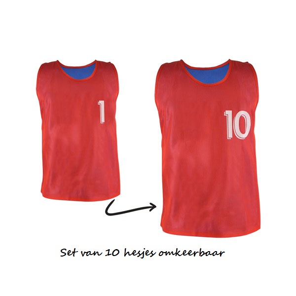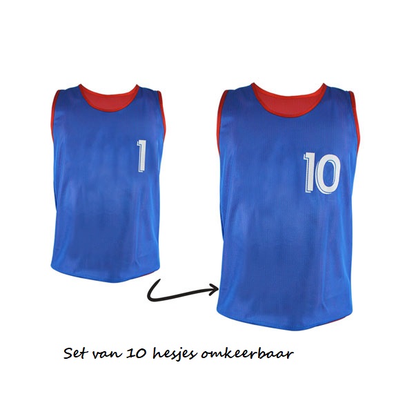Trainingshesjes| Omkeerbaar | Met nummmers 1-10 : Omkeerbare Trainingshesje | Overgooiers | Hesjes | Met nummer 1 t/m 10 | Rood / Blauw