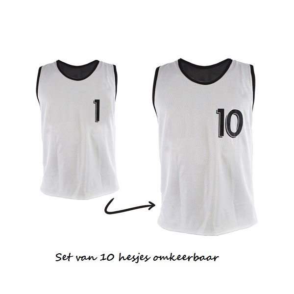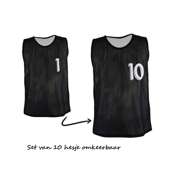 Trainingshesjes| Omkeerbaar | Met nummmers 1-10 : Omkeerbare Trainingshesje | Overgooiers | Hesjes | Met nummer 1 t/m 10 | Zwart / Wit