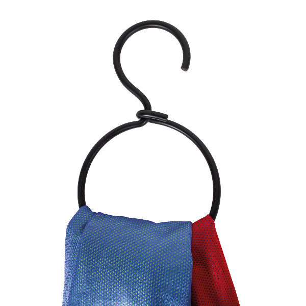 Kapstok voor hesjes of partijlinten, alles bij elkaar eenvoudig op geborgen.