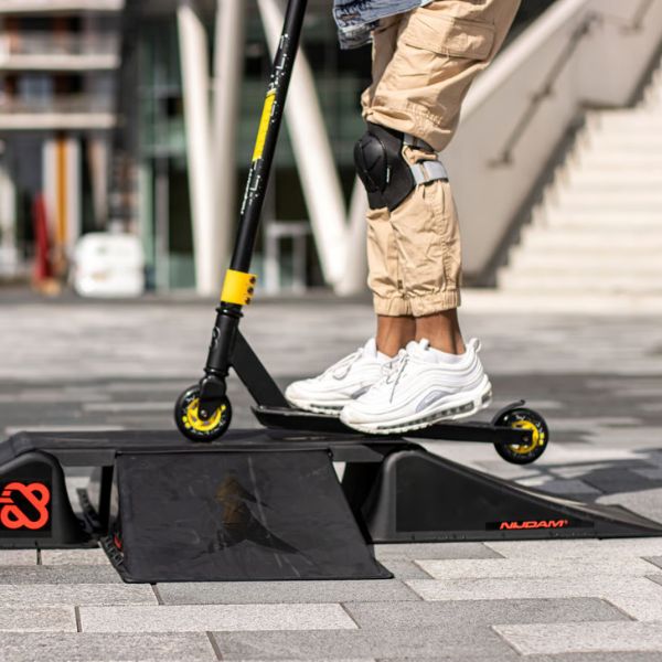 Lol met vrienden! Maak verschillende opstellingen met de Nijdam 2-Way Crossing 4+1 ramp set. Gebruik de 4 hellingen en brug met (stunt) stepjes, inline skates, rolschaatsen, flipgrip boards of zelfs met op afstand bestuurbare auto's. Wat je vrienden ook meebrengen, het wordt supergaaf met je eigen persoonlijke skatepark. Wie kan de langste sprong maken? Of het snelste het parcours afleggen? Enjoy the ride en onthou: slimme skaters spelen veilig - draag altijd bescherming en skate verstandig!