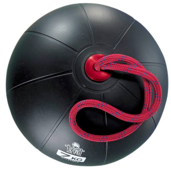 Met een slingerbal train je de bewegingen voor het discuswerpen en kogelslingeren. Door het touw aan de medicineball kan je veel variatie toevoegen aan je trainingen