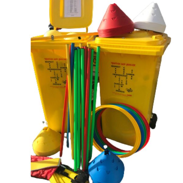 De containers zijn verkrijgbaar in verschillende maten en kleuren, te vullen voor verenigingen, scholen, BSO, TSO, een schoolpleincontainer, u zegt het maar. Leba Sport helpt met het samenstellen van de juiste materialen.