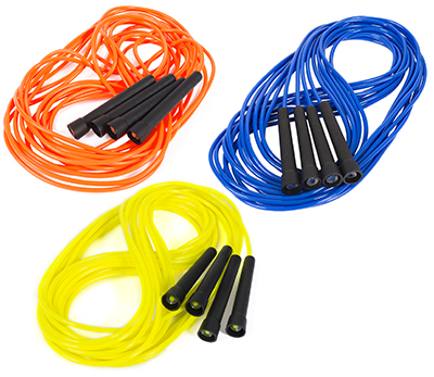 De springtouwen zijn gemaakt van synthetisch materiaal met zwarte handvatten en hebben een lengte van 6 meter, dia 5 mm.