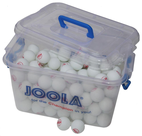 Pak van 144 ballen. Tafeltennisballen in een praktische plastic doos.
