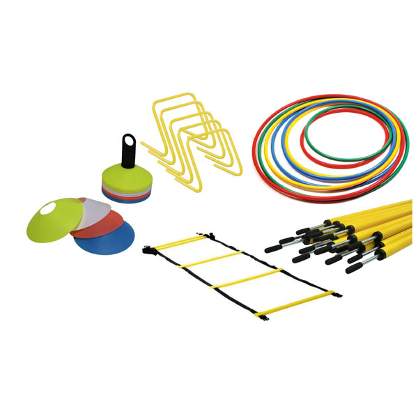Complete set om een goede training te geven. Deze completen set bestaat uit 40 markers, 10 ronde hoepels diameter 65 cm, 12 slamstokken met een lengte van 160 cm en stalen punt, 1 speedladder van 4 meter en 5 haagjes met een hoogte van 30 cm.