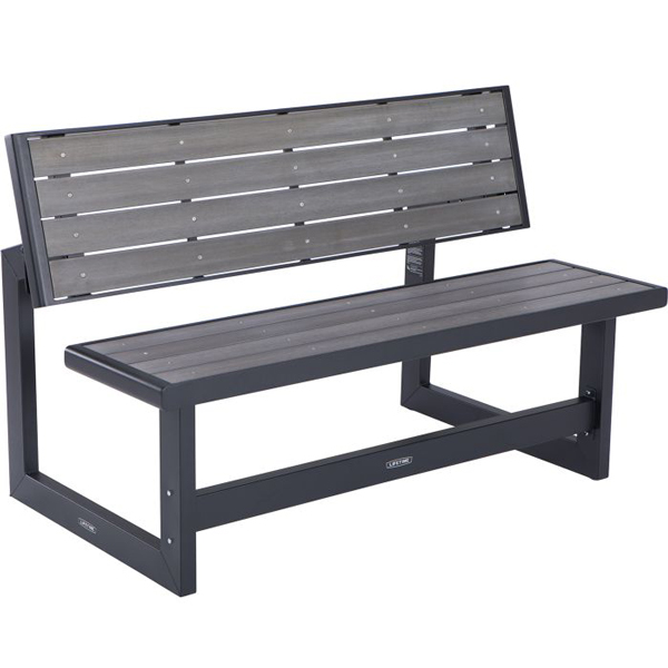 Met deze Lifetime bank heb je de sfeer van een houten bank zonder al het gedoe van onderhoud. De Lifetime bank is namelijk gemaakt van UV-en weerbestendig kunststof met een prachtige hout-look afwerking in harbor grey. Het zwarte stalen frame van de Lifetime convertible bank heeft een gepoedercoate, roestbestendige afwerking. Met 2 banken is de set om te bouwen tot een grote picknicktafel.