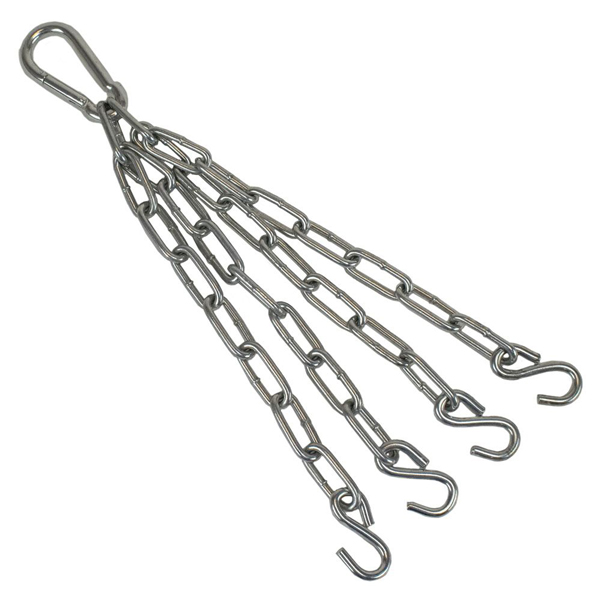 Deze ketting van duurzaam metaal met een chrome laag is geschikt voor elke bokszak met 4 ogen. Deze vierpuntsketting wordt gebruikt om de bokszak aan op te hangen. De schakels zijn uiterst stevig en geschikt voor bokszakken met een gewicht van maximaal 80 kilogram. De ketting heeft een lengte van circa 30 cm.