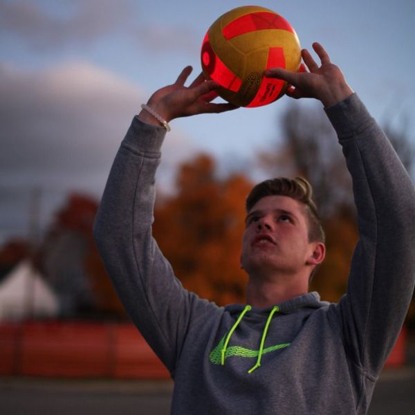 De KanJam Illuminate volleybal geeft licht tijdens het spelen zodat je gewoon door kunt spelen na zonsondergang. Het licht van de volleybal schakelt automatisch uit als de bal niet meer gebruikt wordt