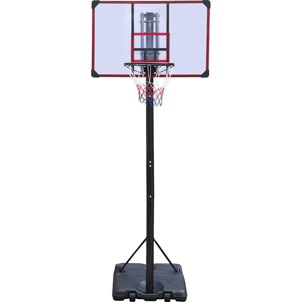 Verrolbare basketbalstandaard 270/305 Pro met een verstelbare ringhoogte van minimaal 270 cm tot een maximaal 305 cm. Backbord is 112 x 72 cm groot.