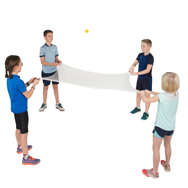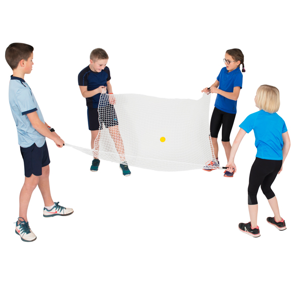 Fling It een vierkant net met handvaten. Probeer met elkaar een bal omhoog te werpen en op het net te houden. Door op het juiste moment samen te werken ontstaat er een leuk spel. Het nylon, knooploos net kan voor verschillende spelen worden gebruikt. Door de grote en het gewicht van een bal kan men het spel en zijn snelheid bepalen. Leuk in combinatie met een overbal, ballonbal, pittenzakje, volleybal of met meerdere kleine ballen tegelijk.