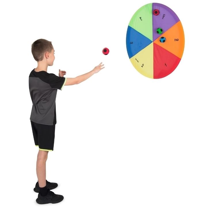 Hoela Hoop Doel. Maak van uw hoepel, een multifunctioneel spel met deze 2 hoezen. De hoezen kunnen getrokken worden over een hoepel van Ø 70 cm en Ø 80 cm. De hoepel kan worden opgehangen aan de muur of op de grond worden neergelegd. Inclusief 8 kleefballen ø 70 mm.
