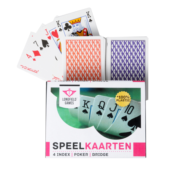 Twee sets Longfield speelkaarten van 100% plastic met 4 index . In een kunststof doosje