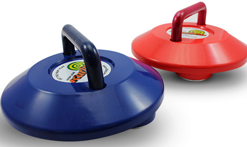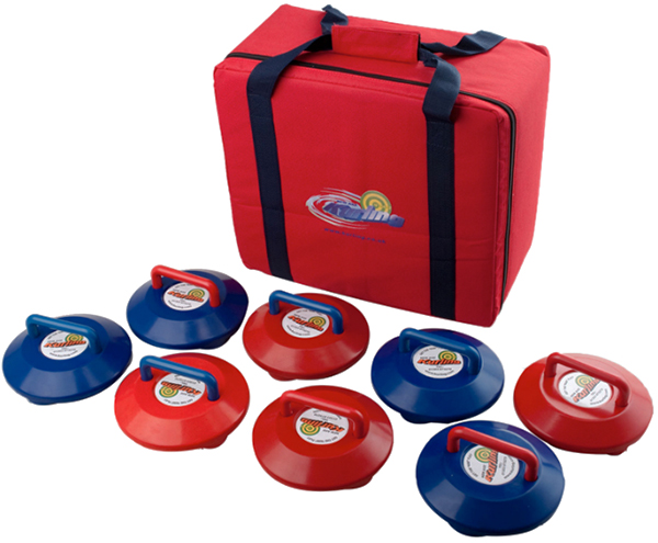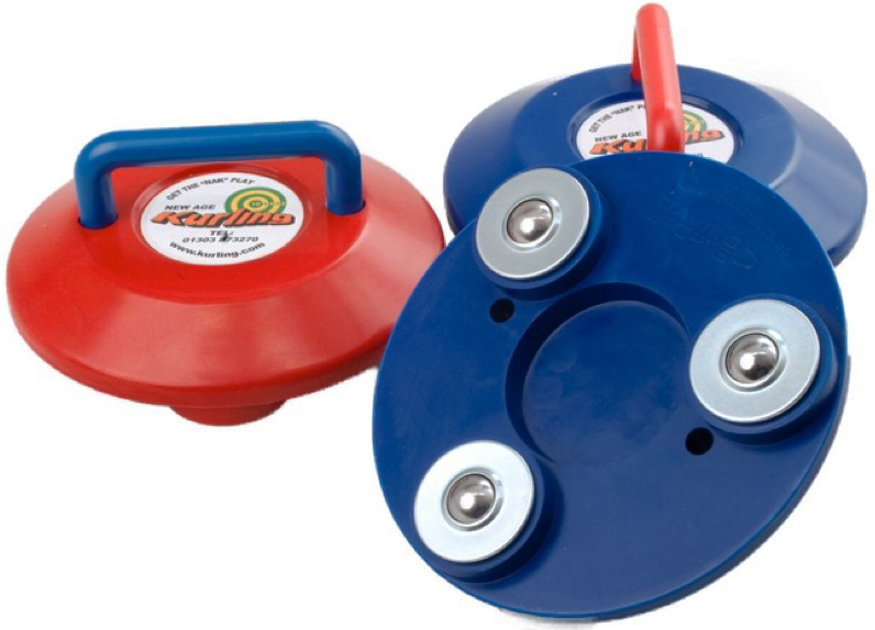 De Kurling stenen zijn gemaakt van kunststof en bevatten 3 stalen lagers in de behuizingen eronder, waardoor de Kurling stenen over een gladde vloer kunnen lopen. Deze set bestaat: uit 4 rode en 4 blauwe Kurling-stenen en een draagtas.