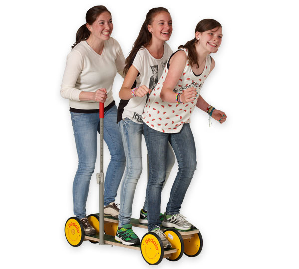 Deze familie uitvoering van Pedalo® is toegankelijk voor maximaal vier personen. Samenwerking, aanpassing en balanceren is hierbij van groot belang. In hoogte verstelbaar van 64 tot 100 cm. Grootte van de pedalen 100 x 14 cm. Deze originele Pedalo® is ook geschikt voor therapeutisch gebruik.
