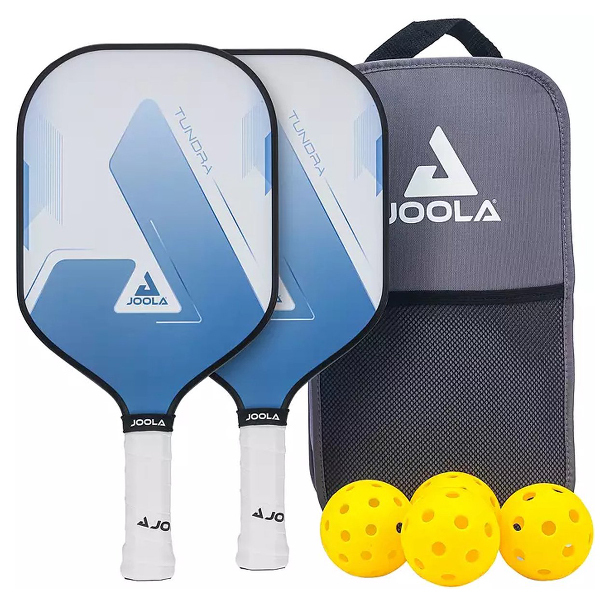 De JOOLA Ben Tundra Pickleball Paddle Set is een pickleball-startset om snel kennis te maken met Pickleball. Ook inbegrepen zijn twee 26-holes indoorballen en twee 40-holes outdoorballen, wat betekent dat je overal kunt spelen. Buiten, op vakantie of in de gymzaal.